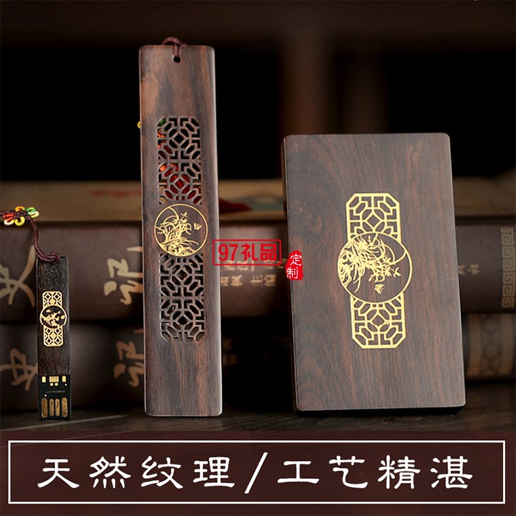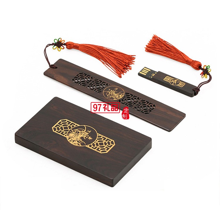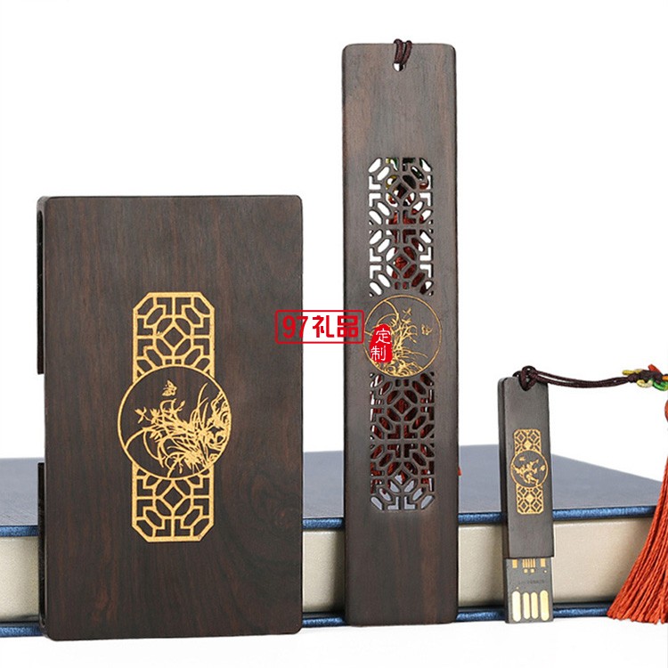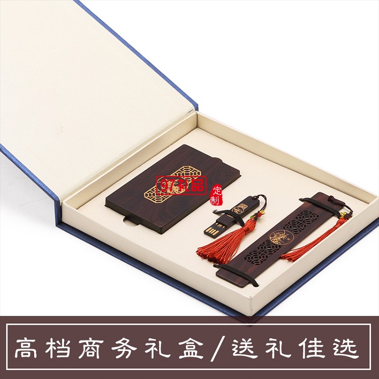 紅木質U盤名片夾書簽定制套裝