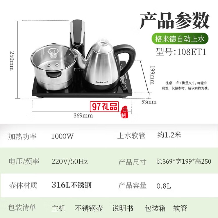格來德電熱水壺燒水壺316L不銹鋼電水壺108ET1定制公司廣告禮品
