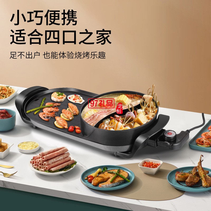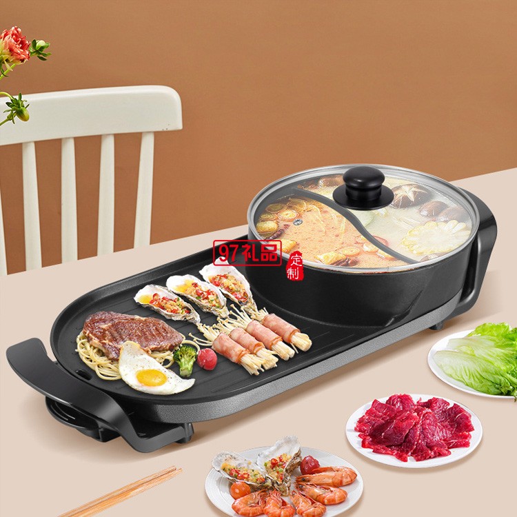 紅雙喜烤涮一體鍋涮烤鴛鴦電火鍋燒烤一體鍋送客戶禮品員工福利