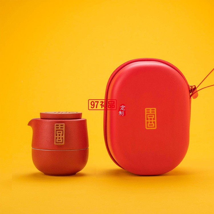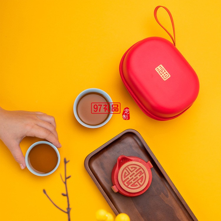 創(chuàng)意喜氣東來快客杯陶瓷茶具便攜式旅行茶具套裝禮品定制商務(wù)禮盒