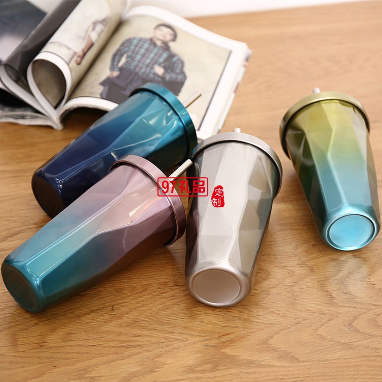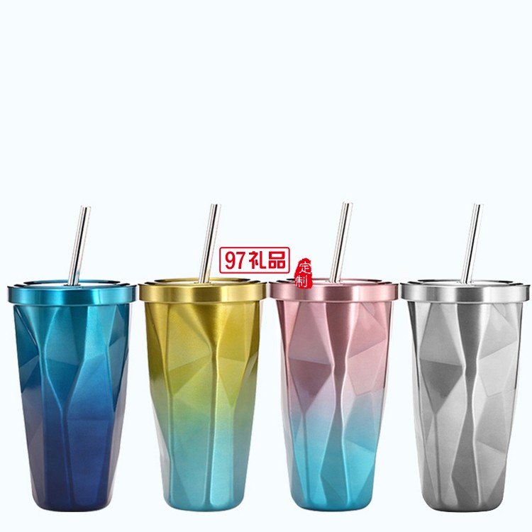 定制不規則雙層304不銹鋼吸管杯水杯子冰杯咖啡杯冰霸杯禮品