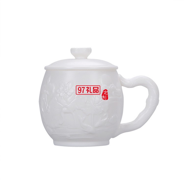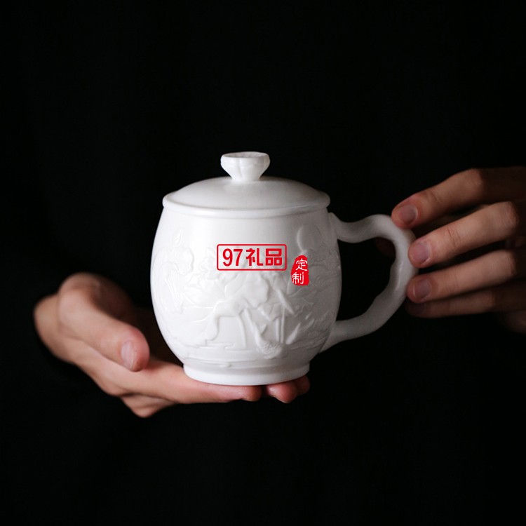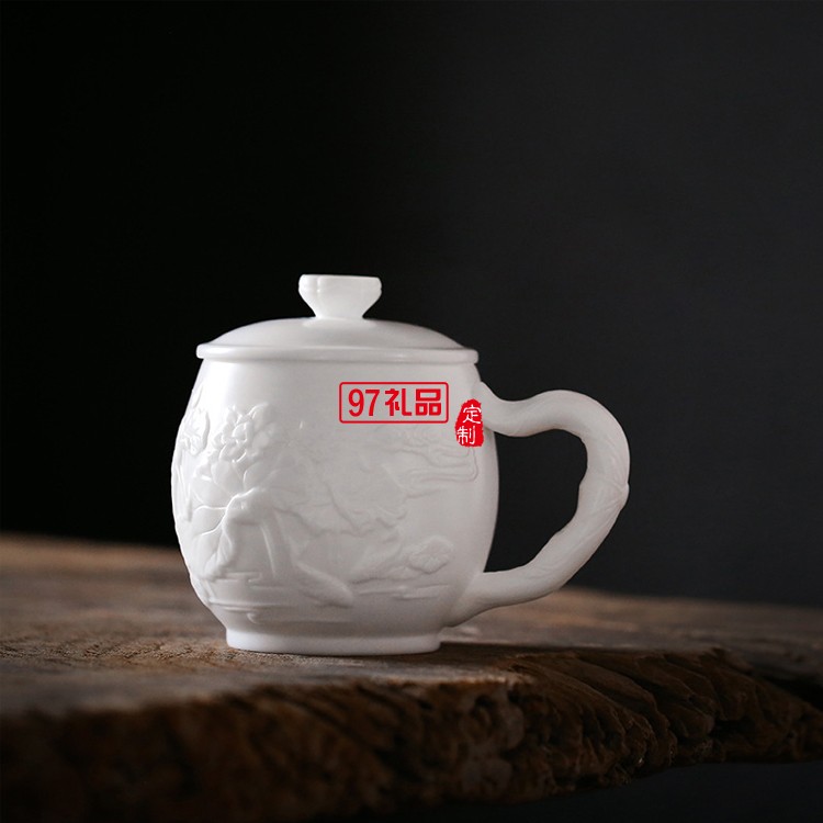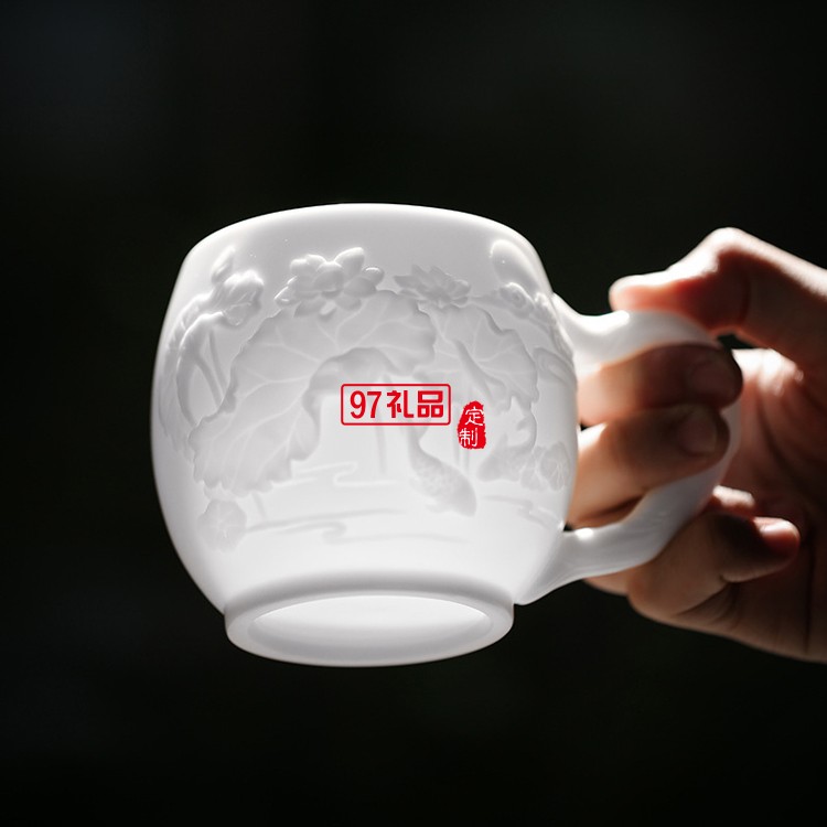 白瓷主人杯創(chuàng)意浮雕茶杯羊脂玉茶具高檔個(gè)人水杯一件logo刻字