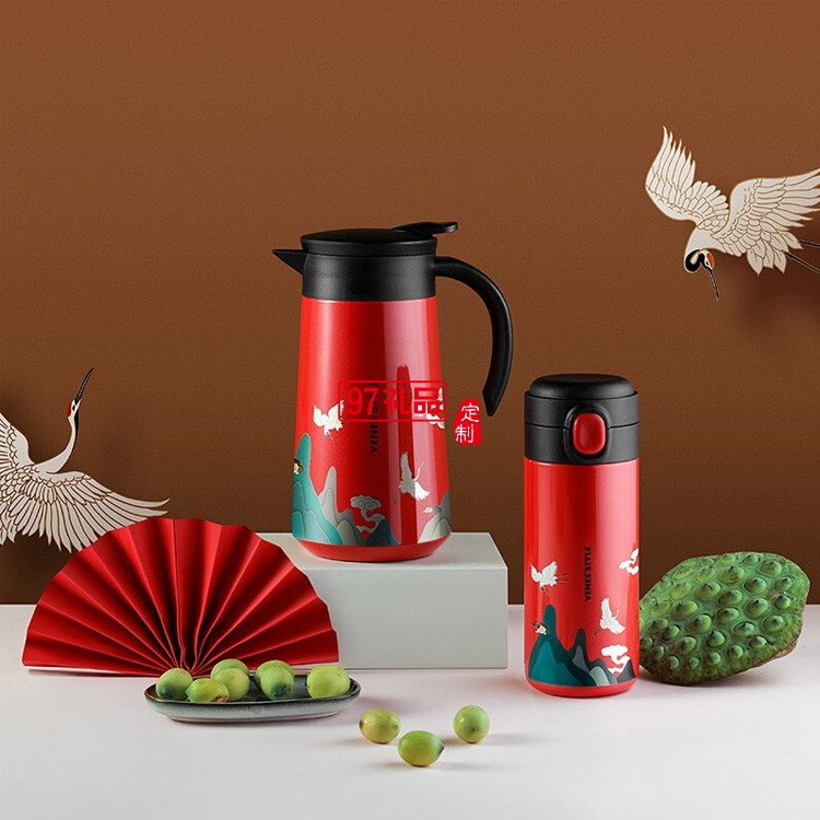 鶴喜迎福兩件套杯壺套裝實用廣告禮品定制