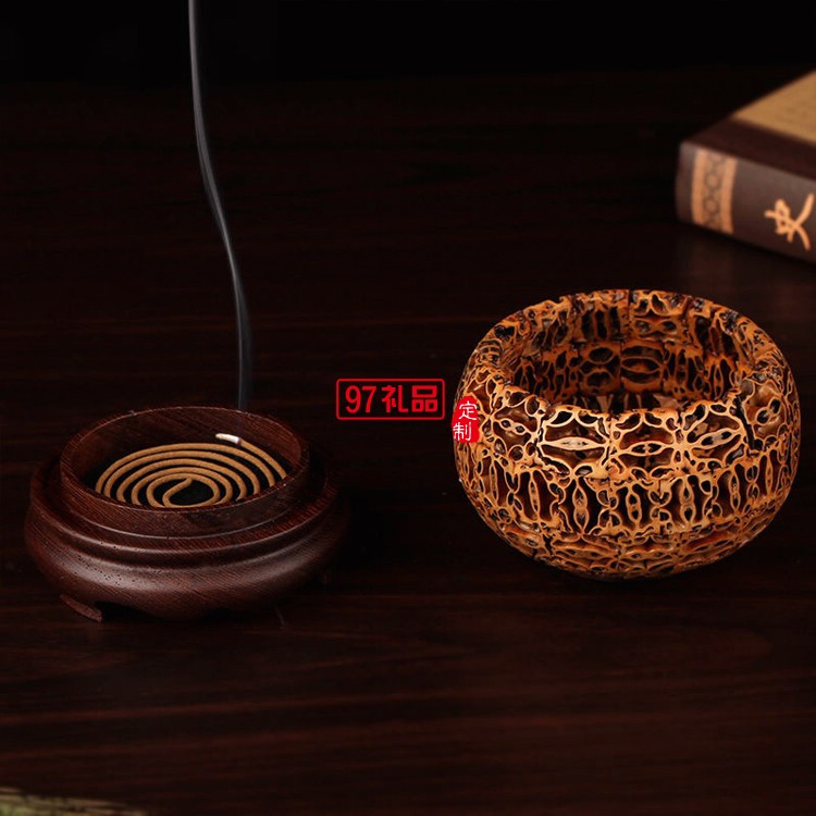 核桃盤香爐紅木創意禮品定制木質工藝品