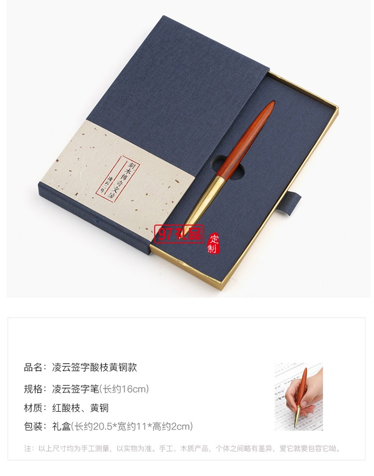 筆頭   0.5mm           外殼材質(zhì):木               筆芯顏色: 黑                       規(guī)格:凌云簽字筆酸枝黃銅款