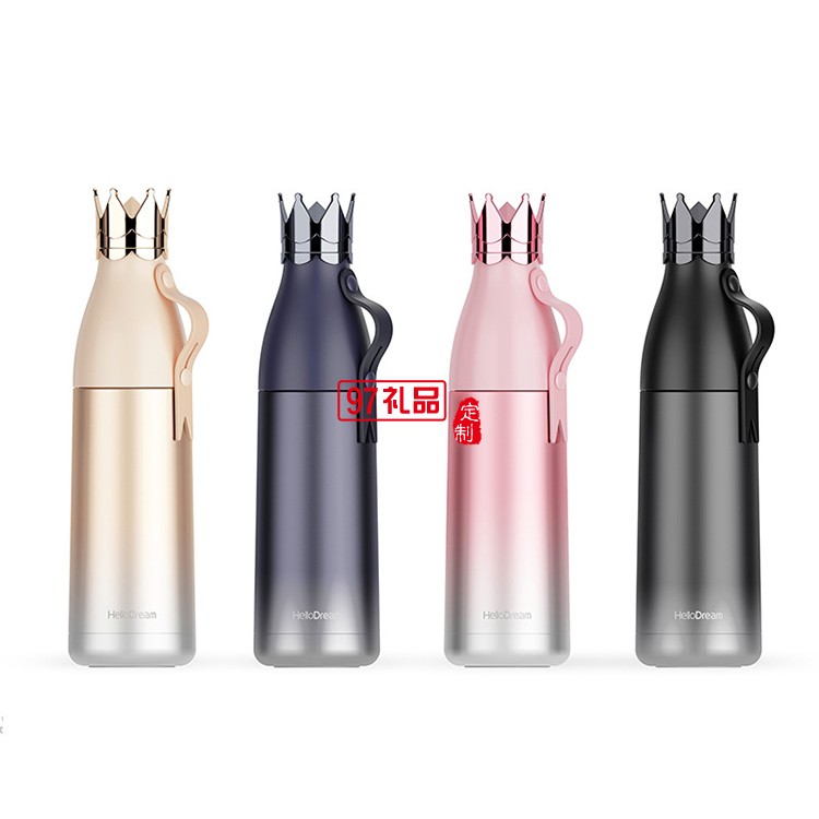 新款皇冠保溫杯304不銹鋼杯保溫壺漸變色創意個性水杯