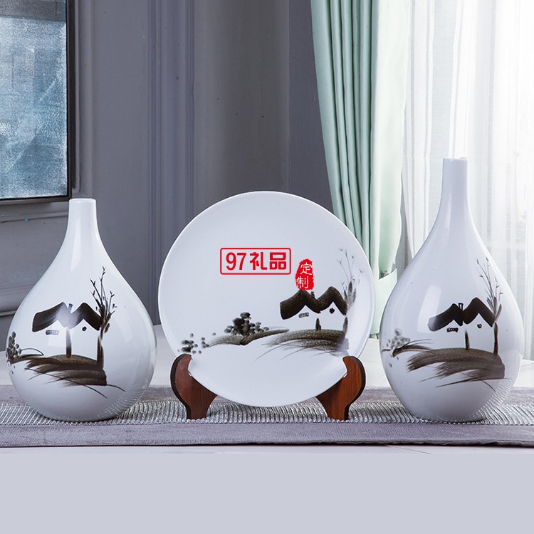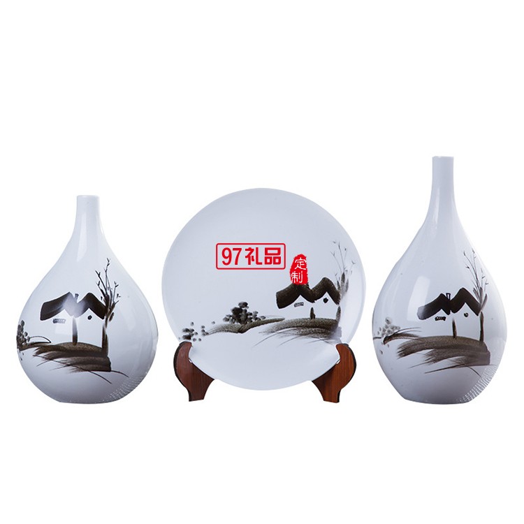 手繪鄉(xiāng)情陶瓷擺件 花瓶含托盤架 家居賓館酒店大廳開(kāi)張開(kāi)業(yè)展會(huì)用