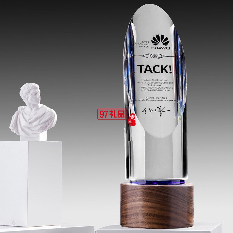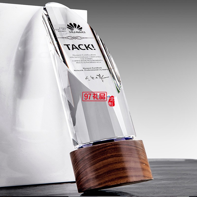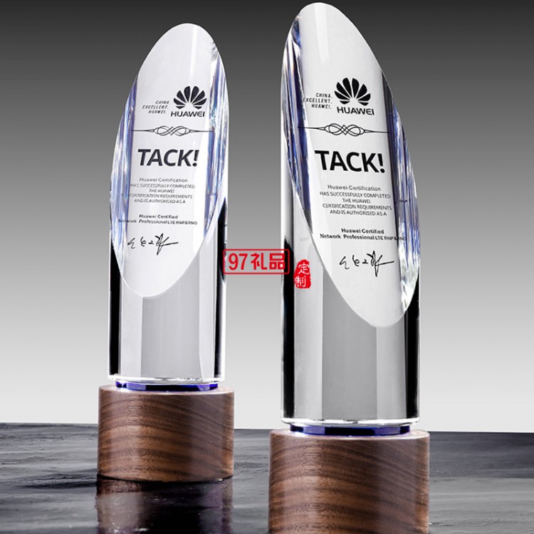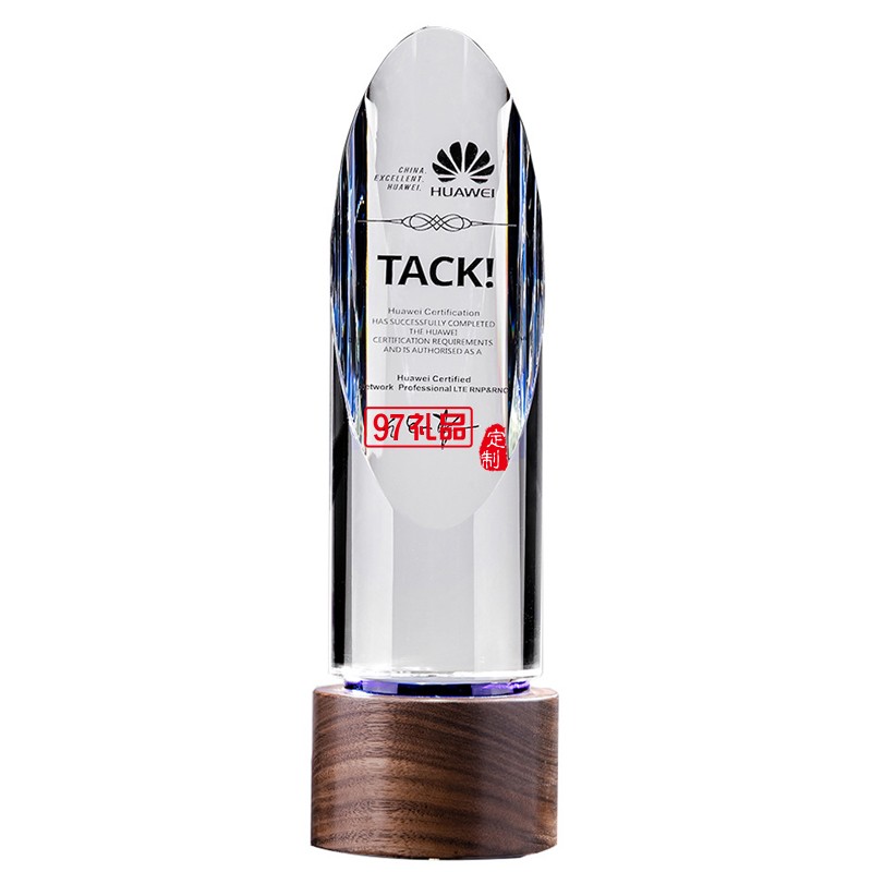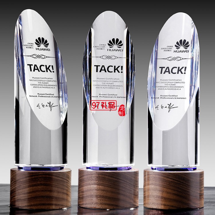 水晶圓柱斜面實(shí)木底座獎杯獎牌定制LOGO