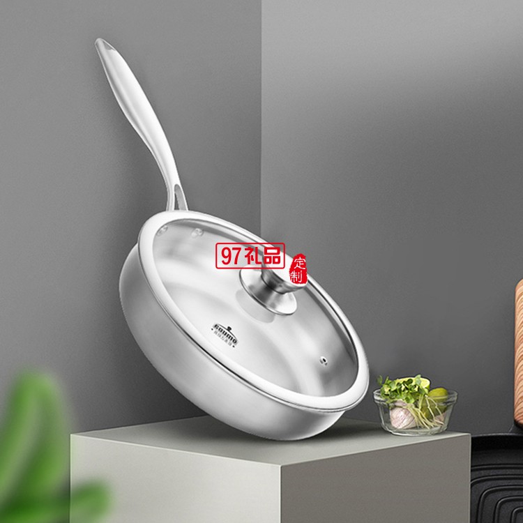 歐美達不銹鋼平底鍋無涂層煎蛋煎餅鍋不粘鍋煎鍋定制公司廣告禮品