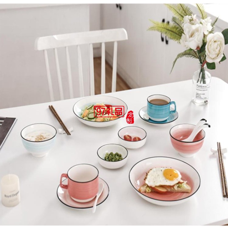 漸變色手繪餐具陶瓷碗陶瓷勺子隨手禮女神節禮品銀行禮品