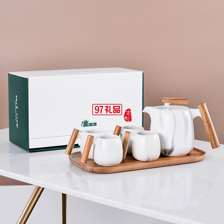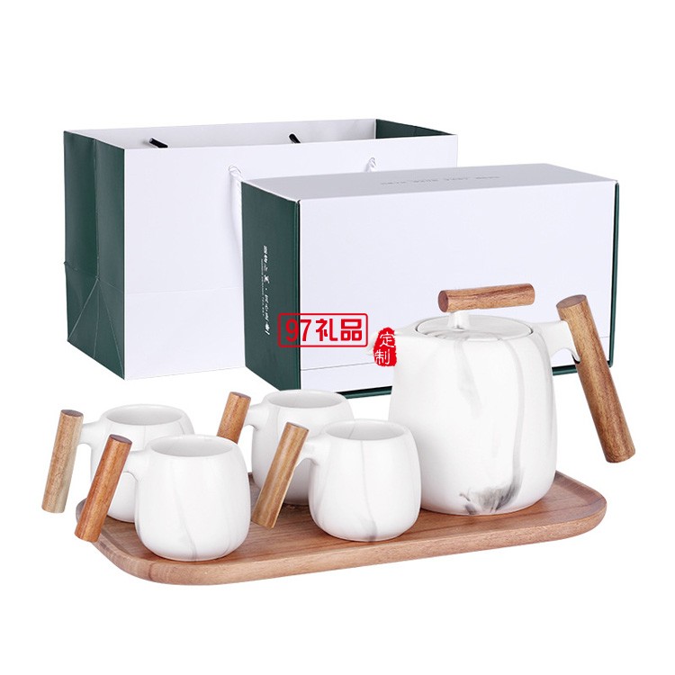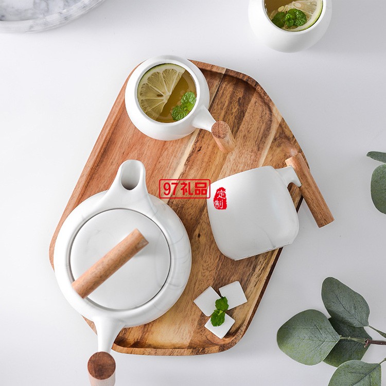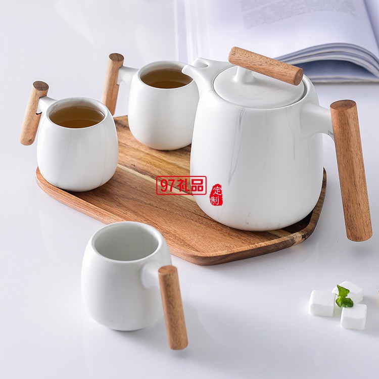 北歐創意簡約茶壺木手柄咖啡陶瓷茶具禮盒套裝花茶壺