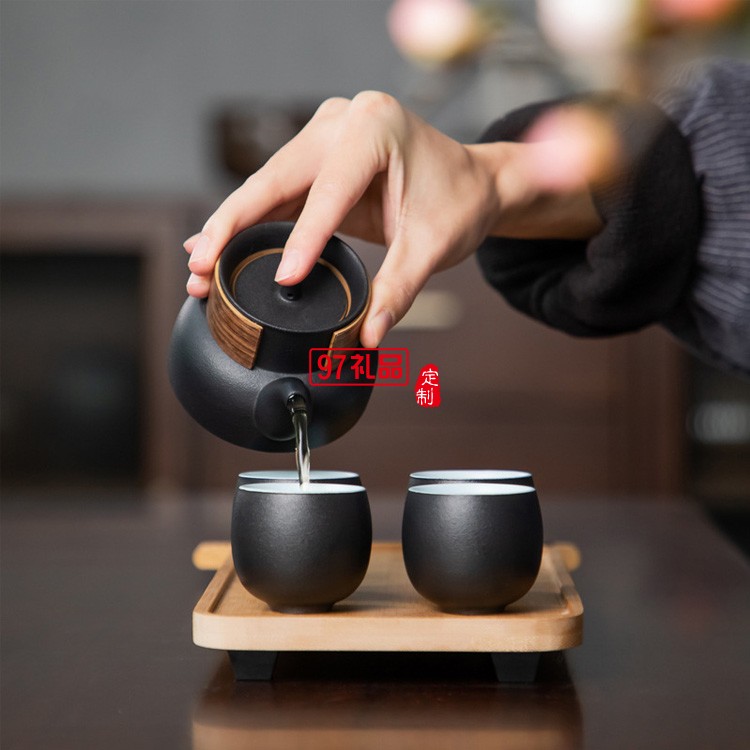 旅行茶具套裝收納便攜包一壺四杯車(chē)載戶外隨身4人黑色陶瓷快客杯