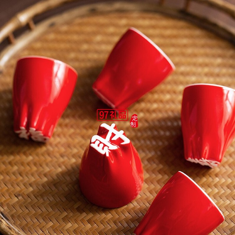 漢字杯十全十美陶瓷杯禮盒福祿壽禧財仁義禮智信帶字杯子