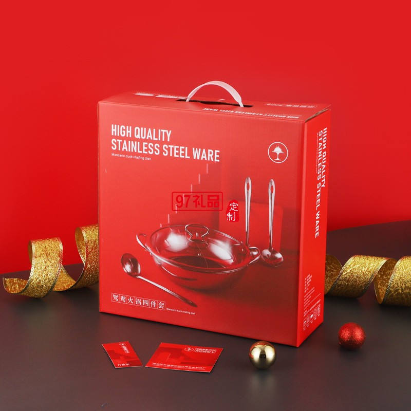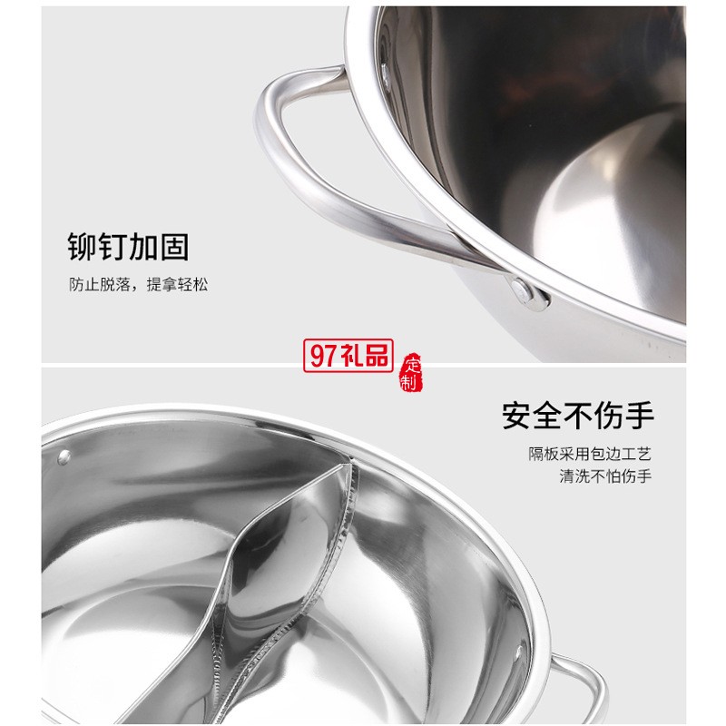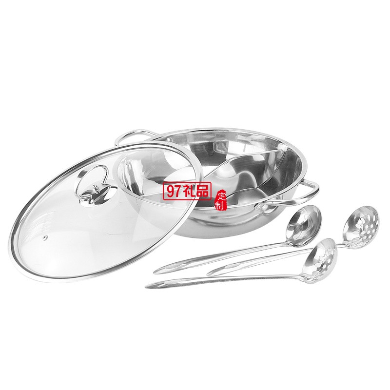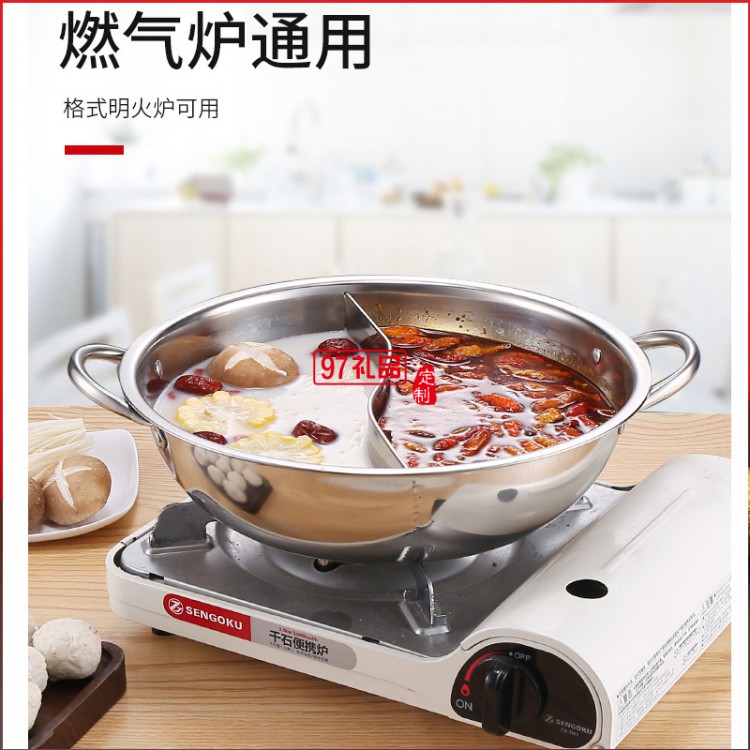 加厚不銹鋼鴛鴦火鍋套裝電磁爐二味火鍋鍋涮涮鍋帶勺商務禮品鍋具