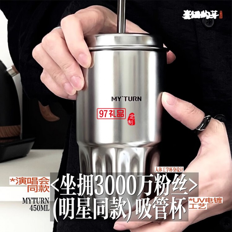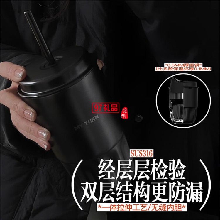 MY`TURN 首款吸管杯,外觀設計還原了T1咖啡杯的影子,卻是全新的體驗。通過輪廓曲線設計呈現:輕潮、時尚、獨特的產品視覺語言。精致的電鍍銀金屬蓋、啞光磨砂黑杯身賦予了產品沉穩的質感。