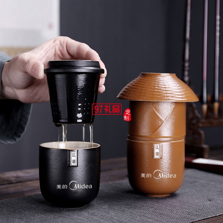 美的定制便攜茶具案例 江湖快客杯黑陶一壺二杯