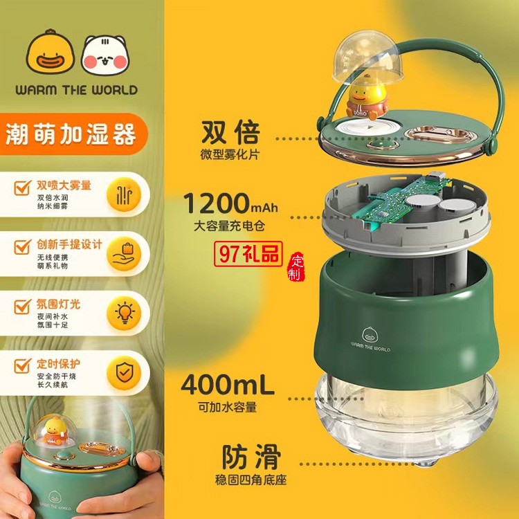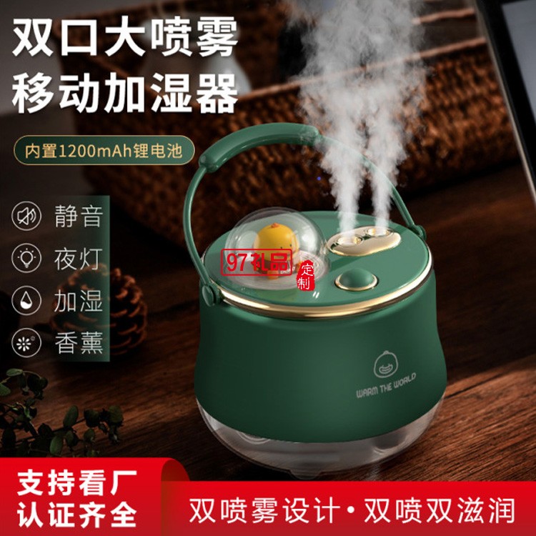 加濕器充電補水無線移動雙噴加濕器小夜燈加濕器定制公司廣告禮品