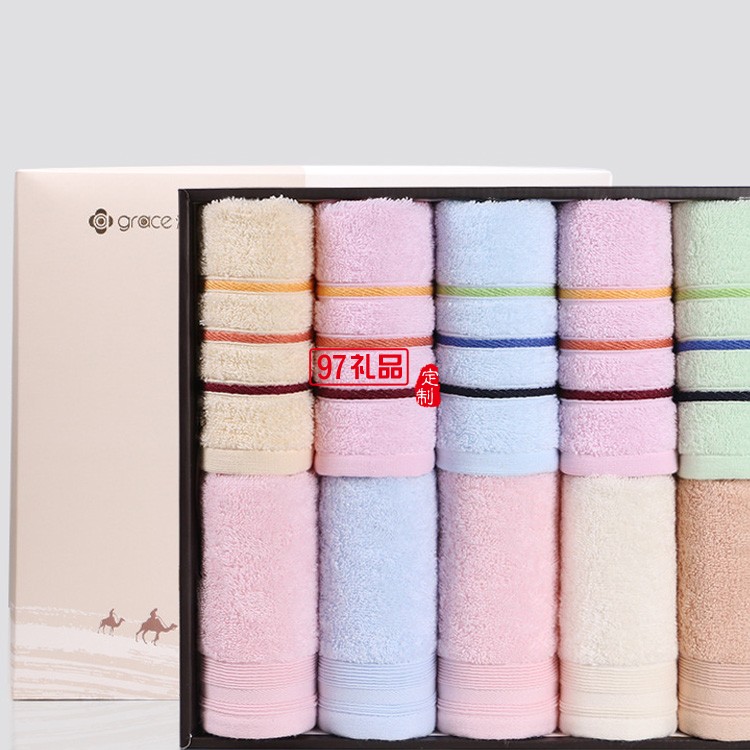 潔麗雅 毛巾禮盒套裝 10條商務婚慶回禮品家用純棉大毛巾