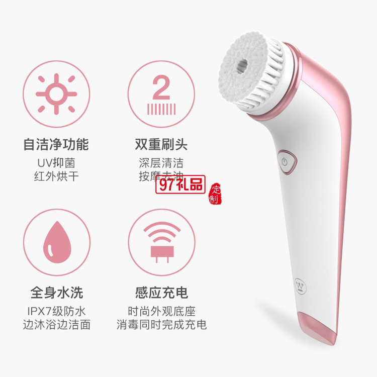 1.法國名師設計 弧形設計,更符合人體工學,手感更好,更時尚,清潔更舒心。 2.深層清潔 適合油性肌膚、長期使用彩妝以及辦公室等人群使用(黑頭、粉刺、痘 印、暗沉的肌膚)。 3.無線充電、UV殺菌、刷頭自烘干 無線充電底座,除了具有充電功能外,還帶有紫外線殺菌功能及刷頭烘干功能。 4. IPX7級防水全身水洗,性能也不會受到影響,防水程度更高。 5.杜邦毛刷&硅膠刷頭 配有2種刷頭,分別是杜邦毛刷和食品級硅膠刷頭,硅膠刷頭適合任何肌膚(包括敏感肌和痘痘肌)使用 |