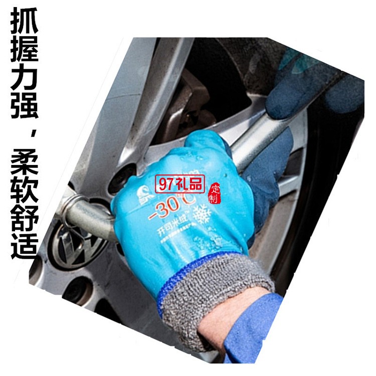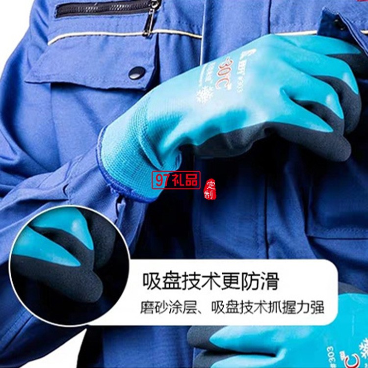 登升303冬季加絨加厚勞保手套 保暖防寒釣魚冰釣冷庫男浸膠手套