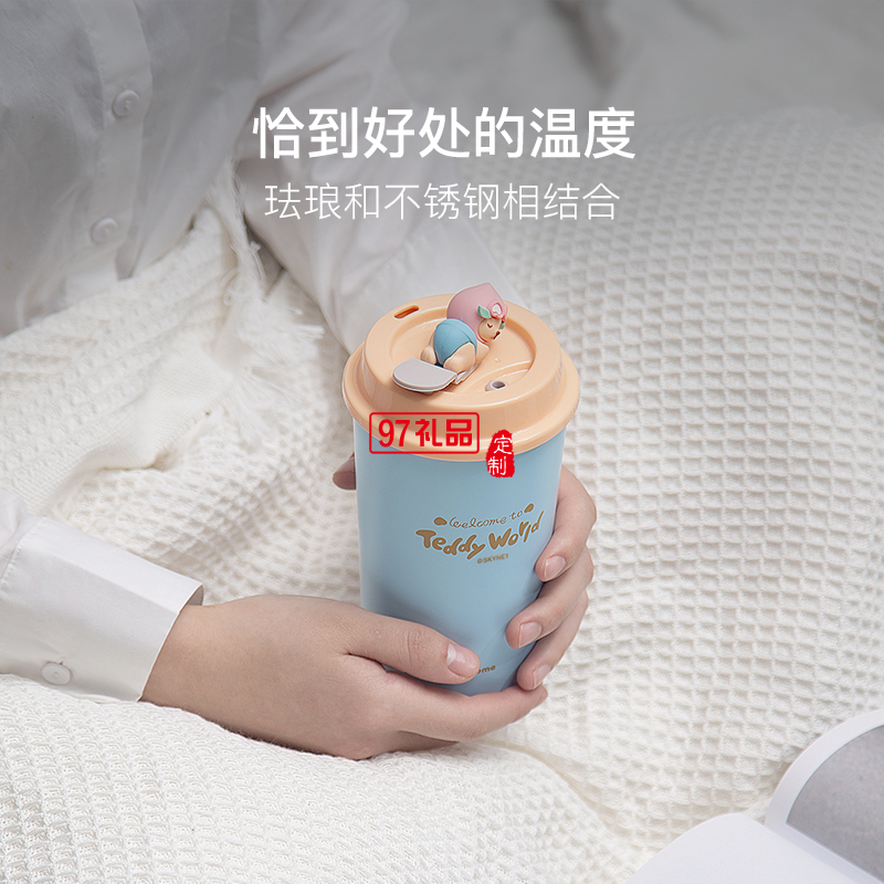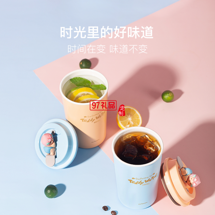 so.home 泰迪珍藏水蜜桃可愛暖手杯女生高顏值咖啡杯