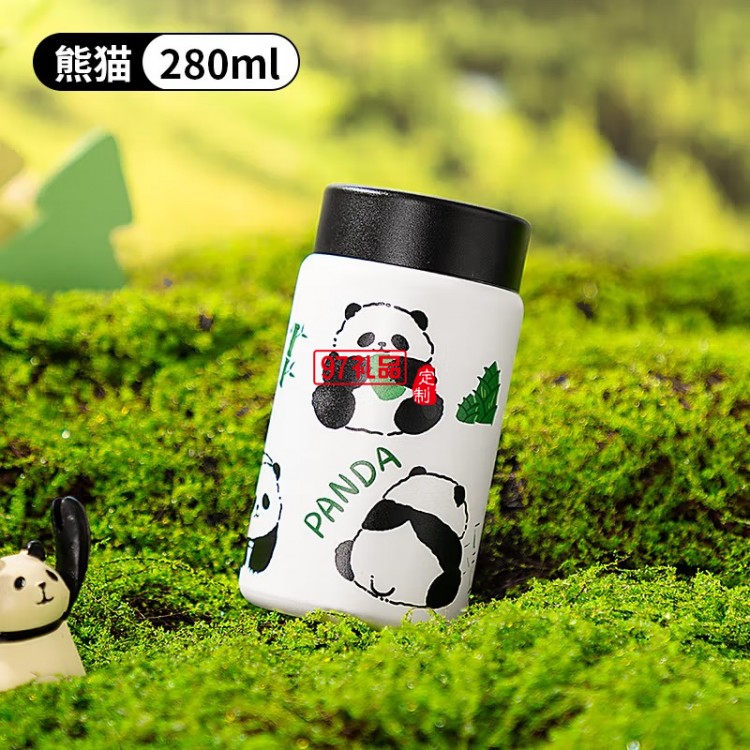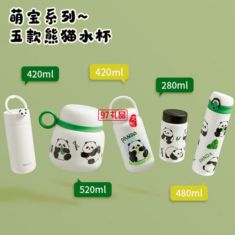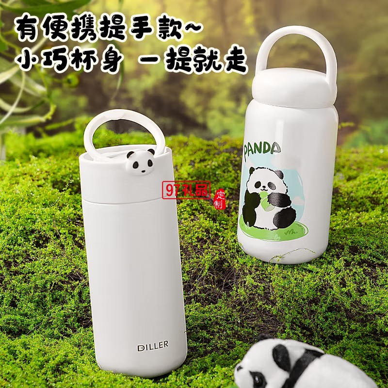 迪樂貝爾可愛熊貓系列周邊紀念伴手禮水杯316不銹鋼便攜提手保溫杯
