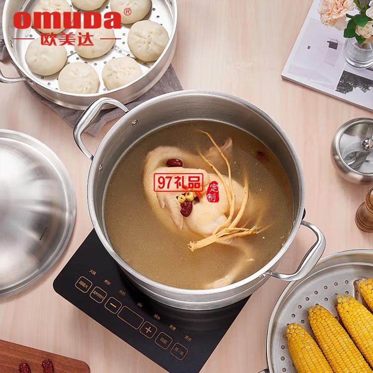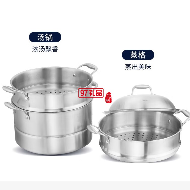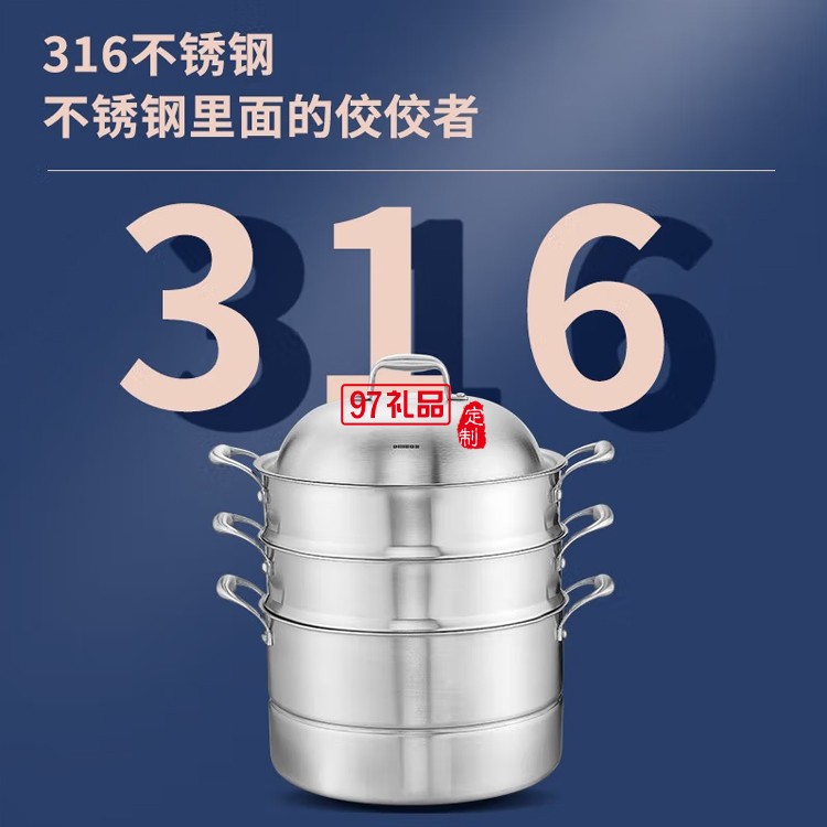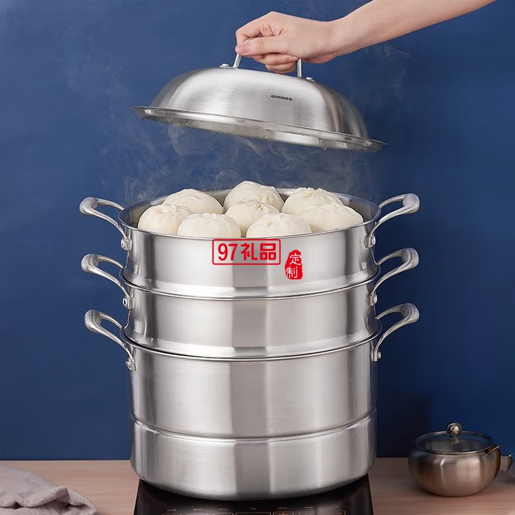 歐美達316不銹鋼饅頭蒸鍋三層加厚蒸煮兩用鍋定制公司廣告禮品