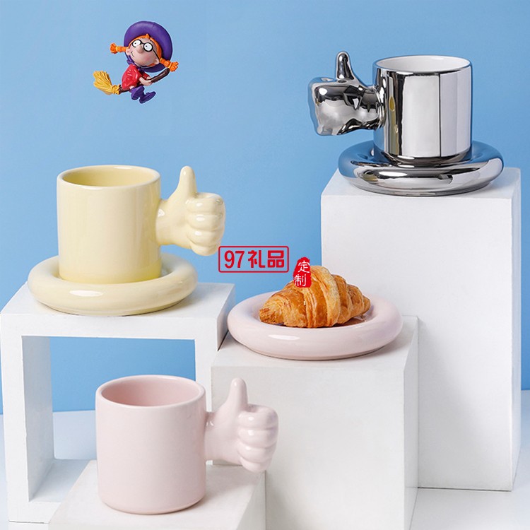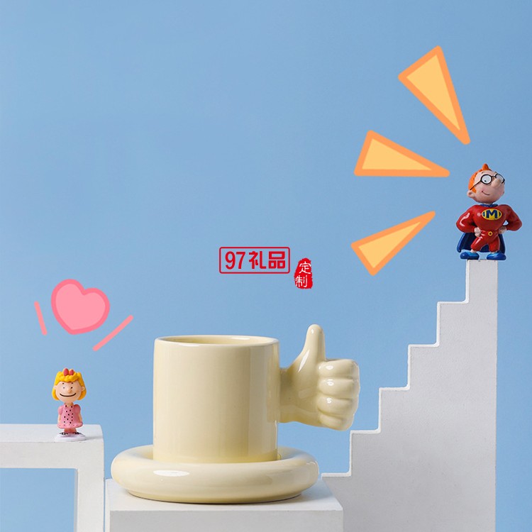 陶瓷馬克杯創(chuàng)意大拇指點(diǎn)贊杯 個(gè)性佼佼者杯奧利給咖啡杯碟彩盒