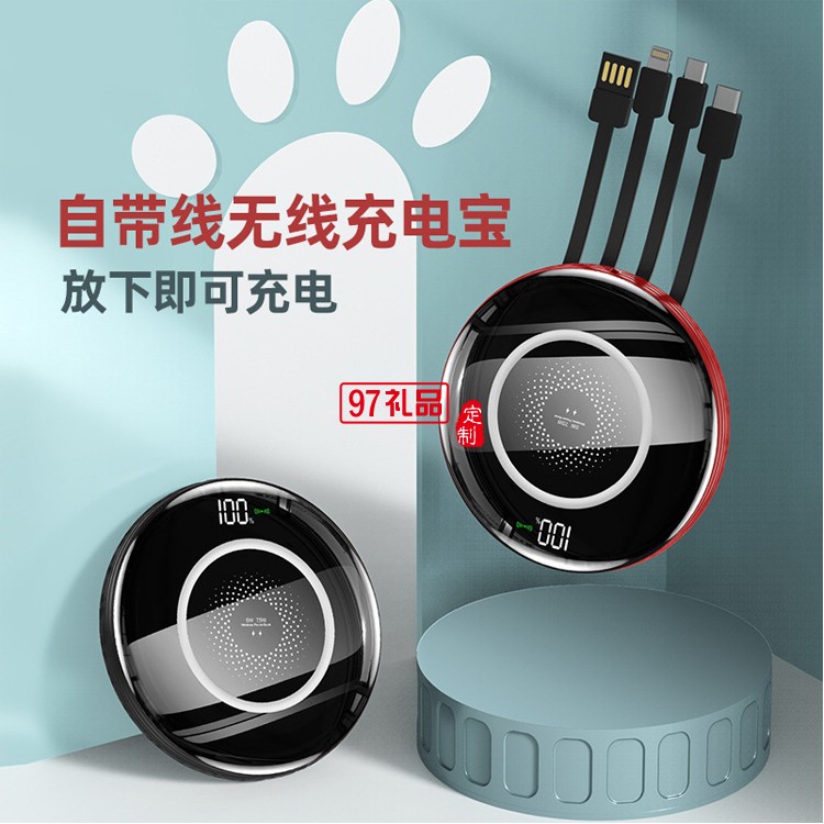 帶線數顯移動電源無線充5000/10000毫安大容量