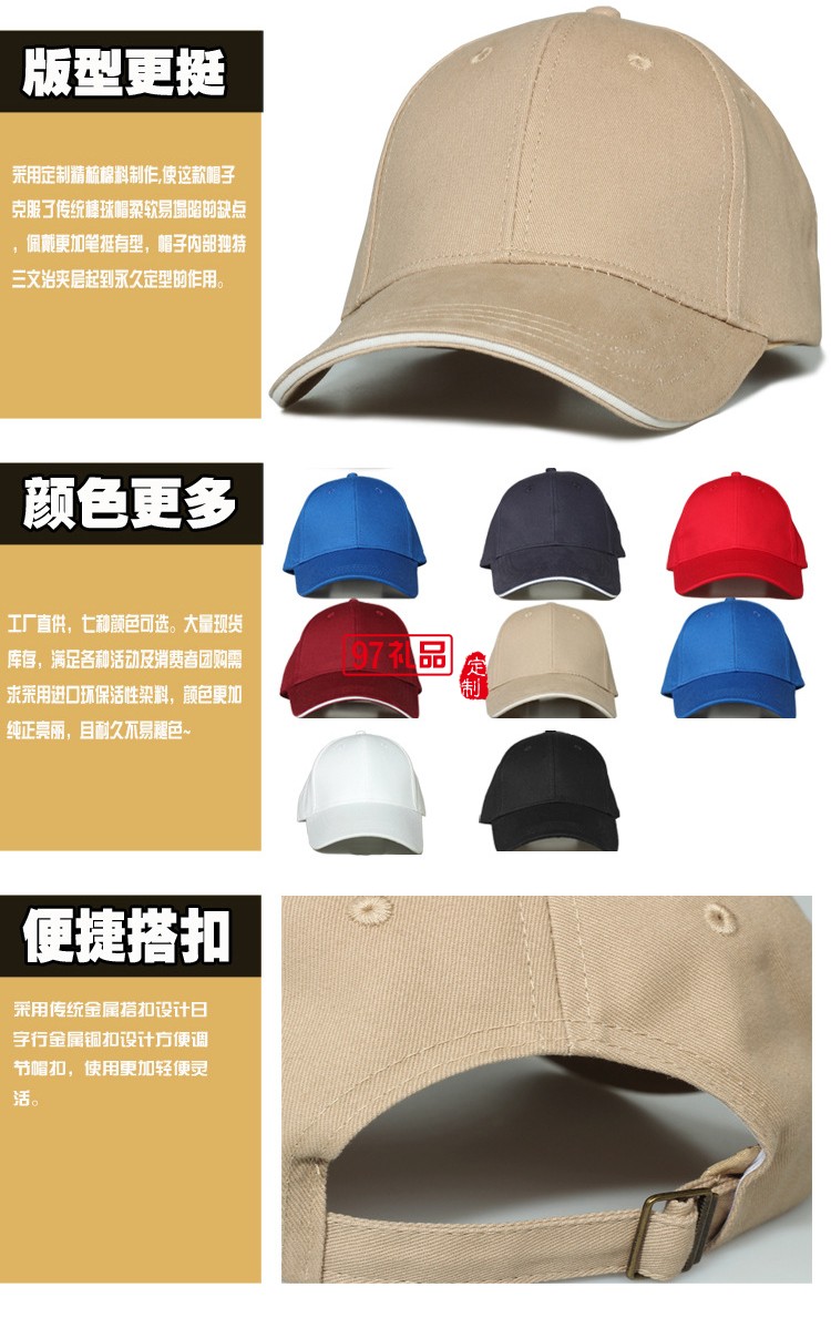 LOGO通常為刺繡。后面為魔術貼或金屬扣。汗帶加海綿。