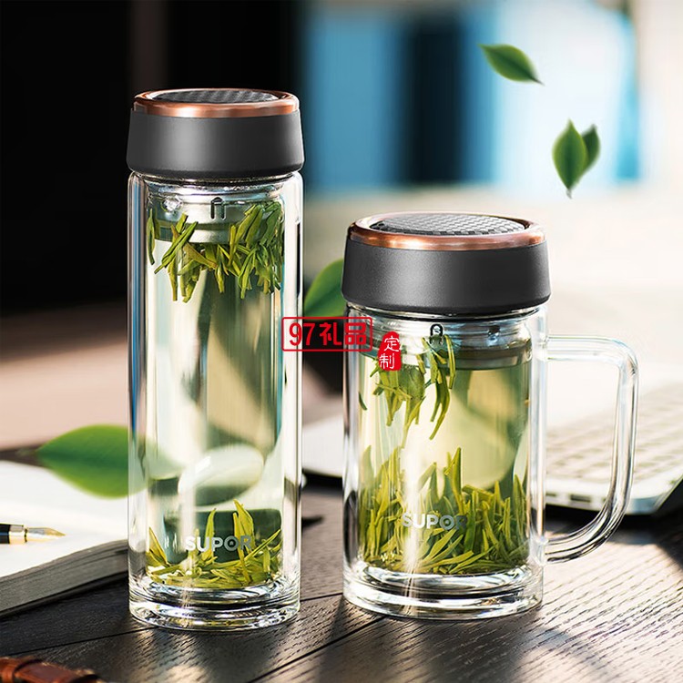 蘇泊爾玻璃杯雙層玻璃水杯泡茶杯KC38CM1定制公司廣告禮品