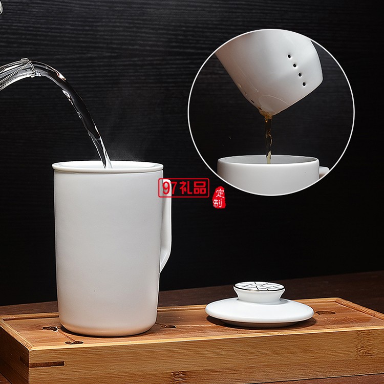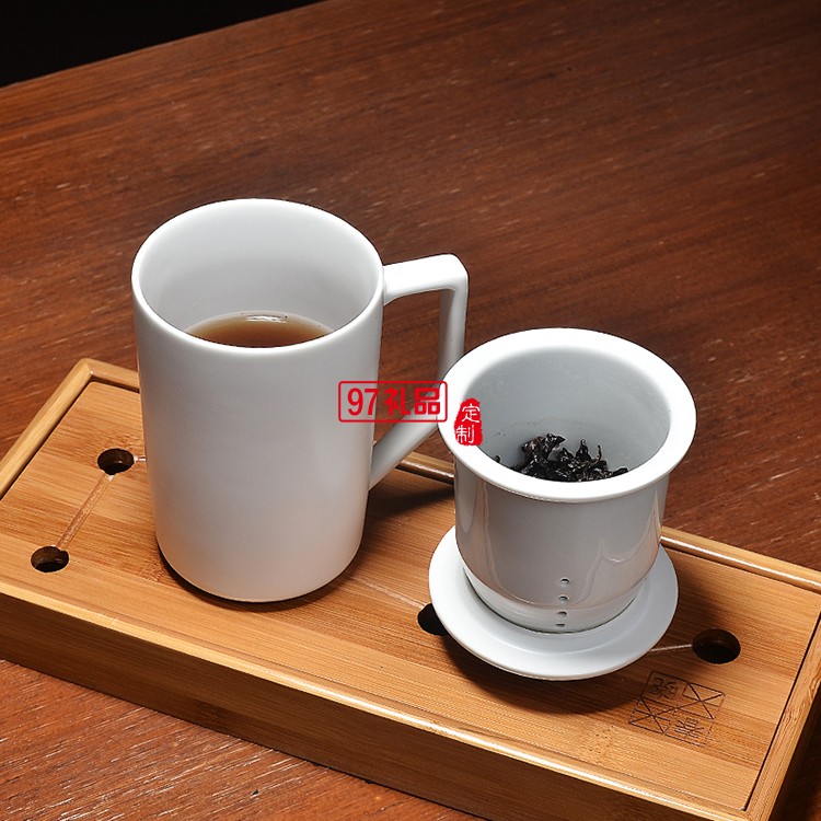 定窯陶瓷馬克杯過濾帶蓋陶瓷茶杯創意杯子
