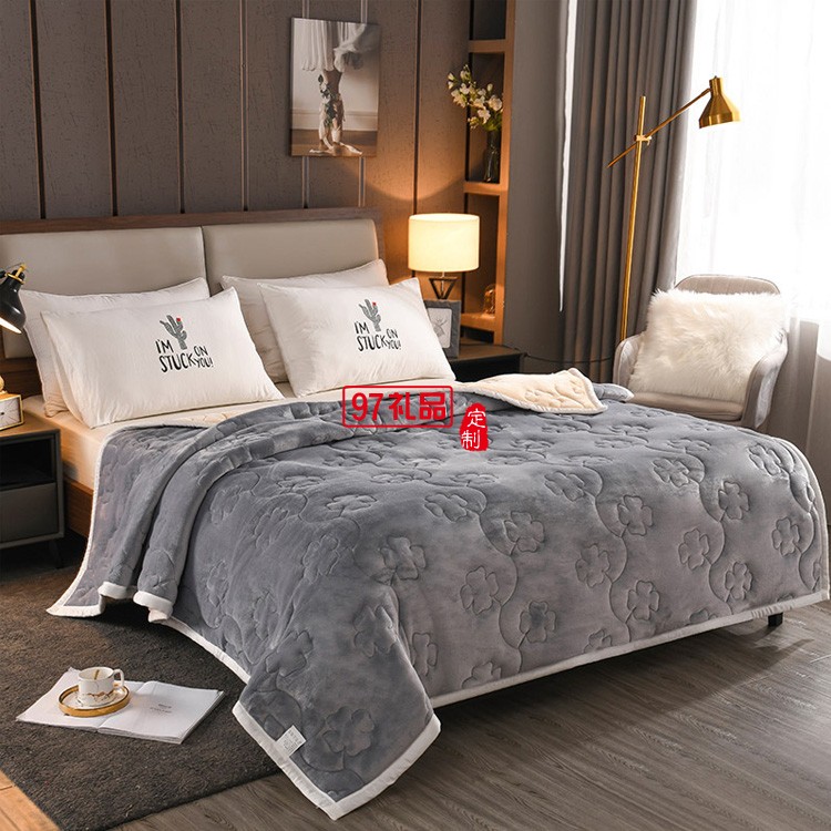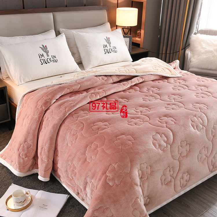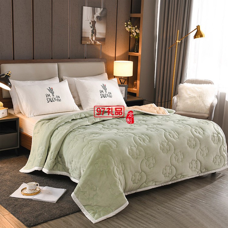 四葉草毛毯三層加厚秋冬保暖被毯高檔禮品法蘭絨珊瑚絨毯