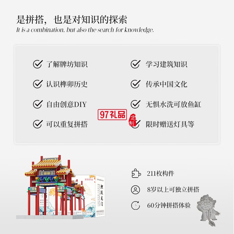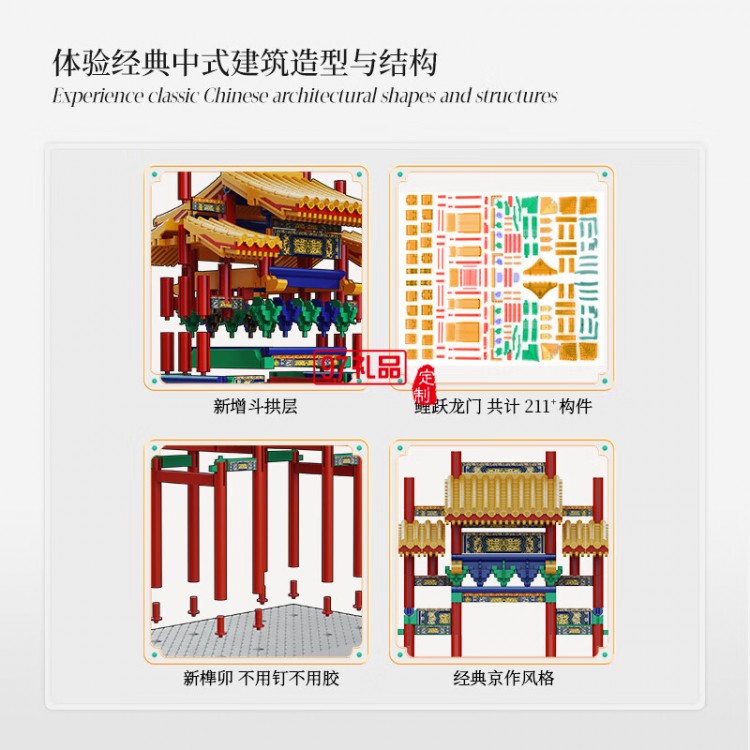 魚躍龍門牌坊故宮榫卯積木玩具中國風古建筑潮玩禮物拼裝模型diy