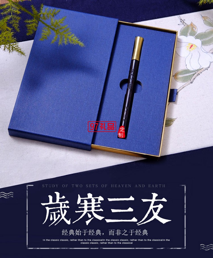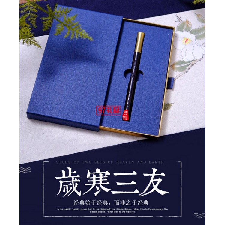 紫光檀歲寒三友紅木簽字筆 古典辦公中性筆 企業(yè)學(xué)校宣傳禮品筆舉報(bào)