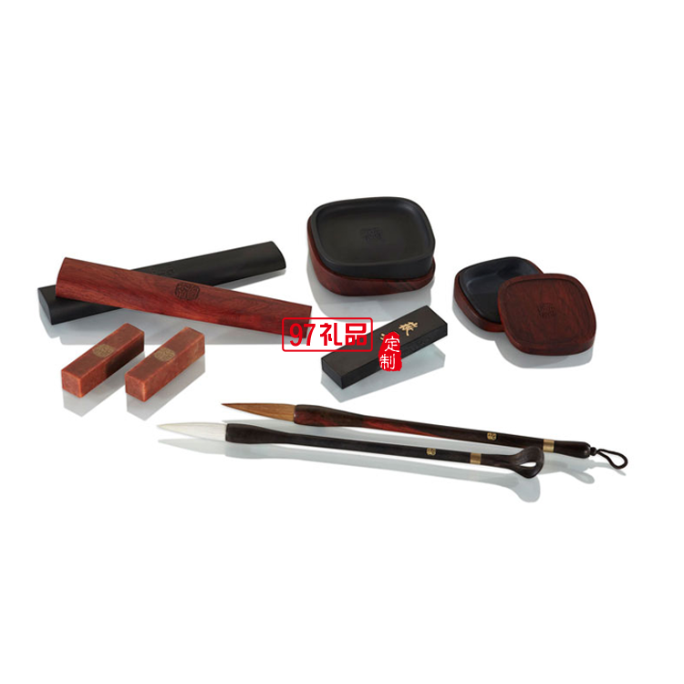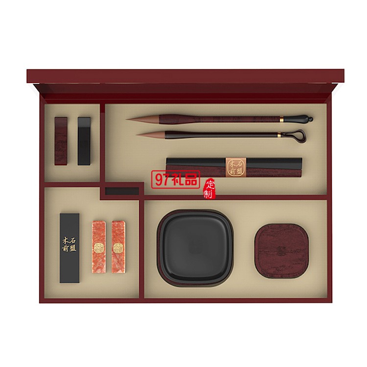 產(chǎn)品集巧思匠心于一身,內(nèi)含湖筆、筆架、篆印、鎮(zhèn)尺各一對;宣紙一本;歙硯、筆洗、印泥盒、徽墨各一方。以傳統(tǒng)非遺工藝打造,富含深厚的文化淵源,結(jié)合木與石兩種材質(zhì),打造高貴上乘的文房精品。