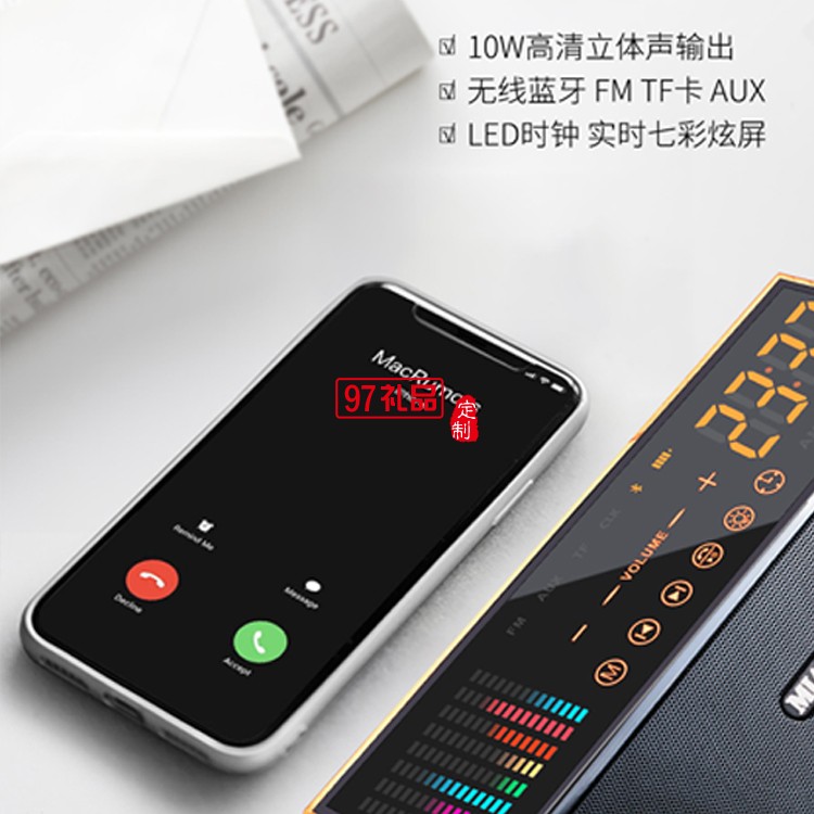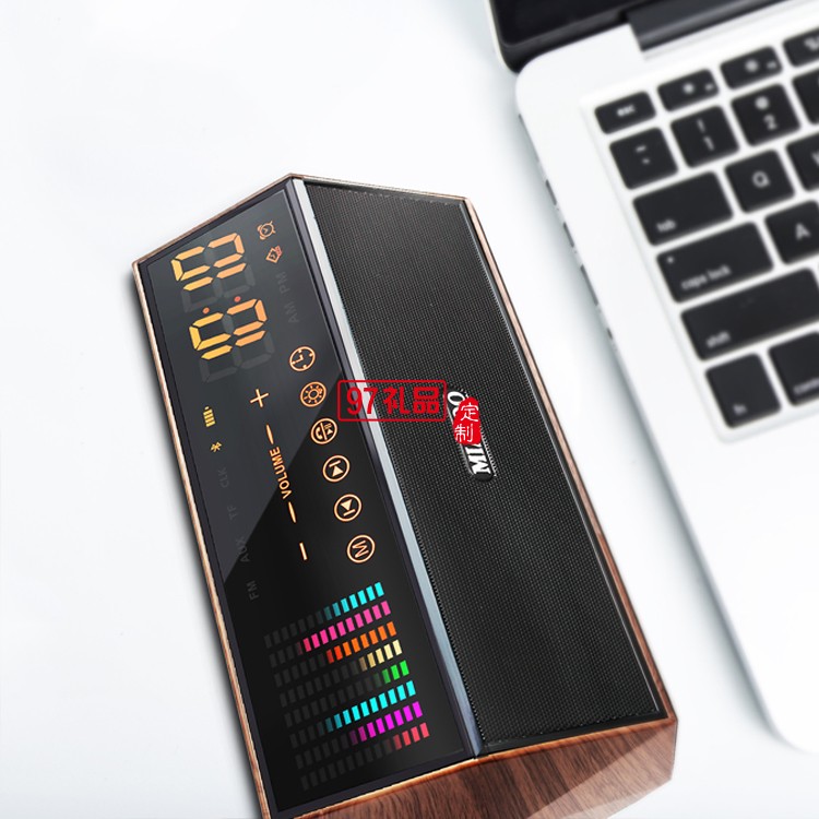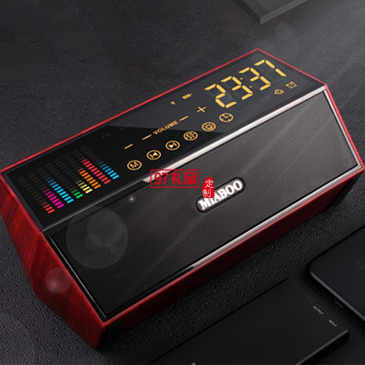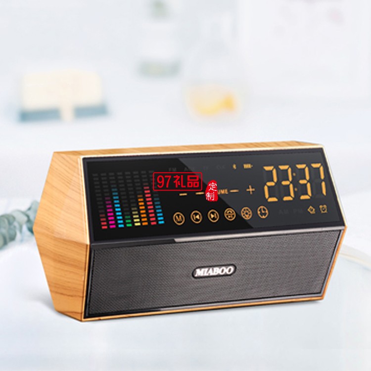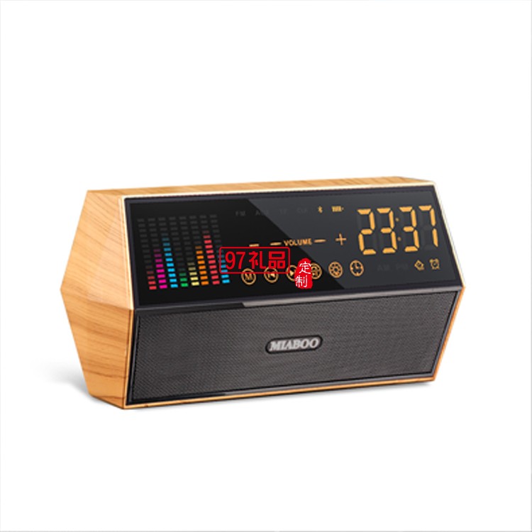 藍牙音箱木紋時鐘收音機麥克風智能音響定制公司廣告禮品
