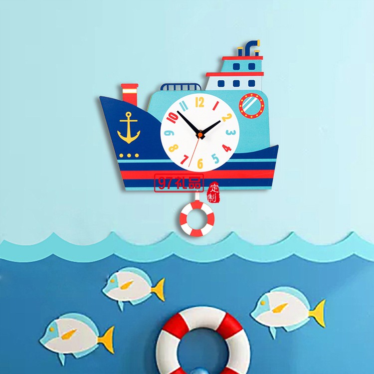 木質卡通搖擺鐘 兒童房裝飾鐘表