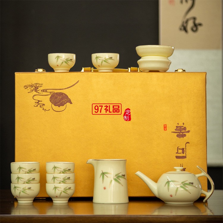羊脂玉茶具套裝禮盒中式描金白瓷蓋碗泡茶壺茶碗客廳商用整套