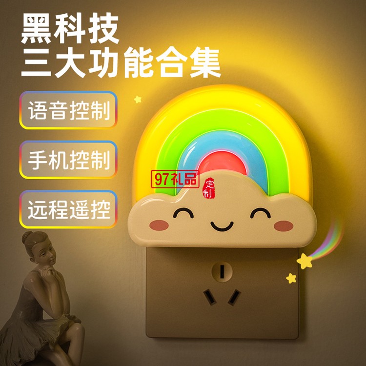 產品名稱:Minin彩虹語音夜燈 產品型號:TW-L15 產品款式:基礎款/高配款 產品材料:GPPS+PC+HIPS 包裝材料:牛皮紙 產品配件:說明書+遙控器(僅限高配款) 燈具光源:LED 額定電流:0.07A 輸入電壓\頻率:220V~50Hz 功率因數:0.05 額定功率:1W(6×0.2W/LED模塊+2×0.5W/LED模塊) 執行標準:GB7000.1GB7000.212GB\T 17743