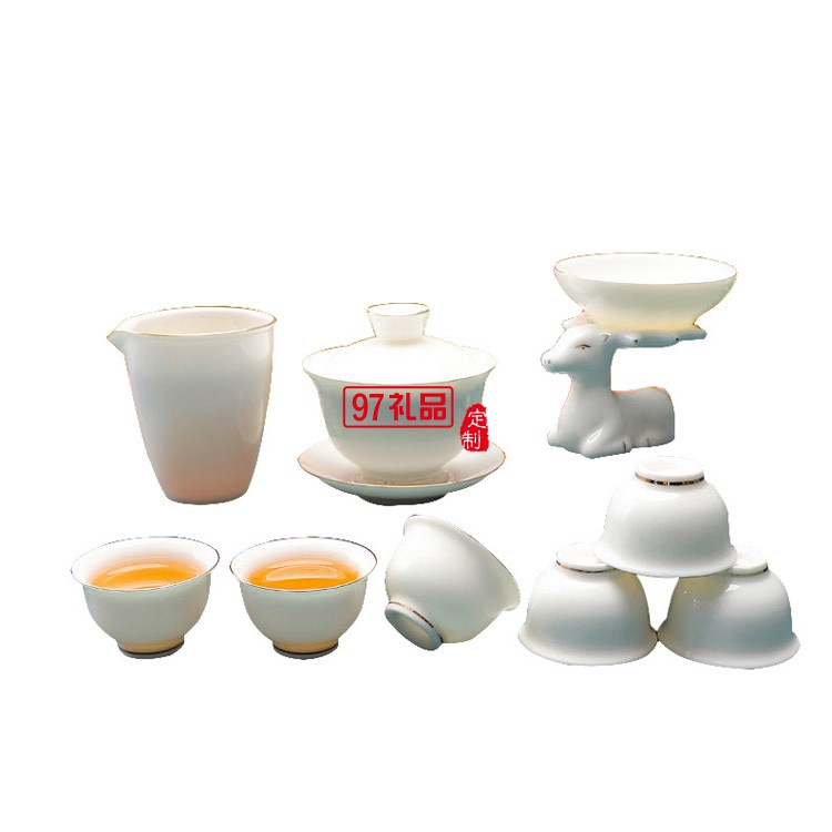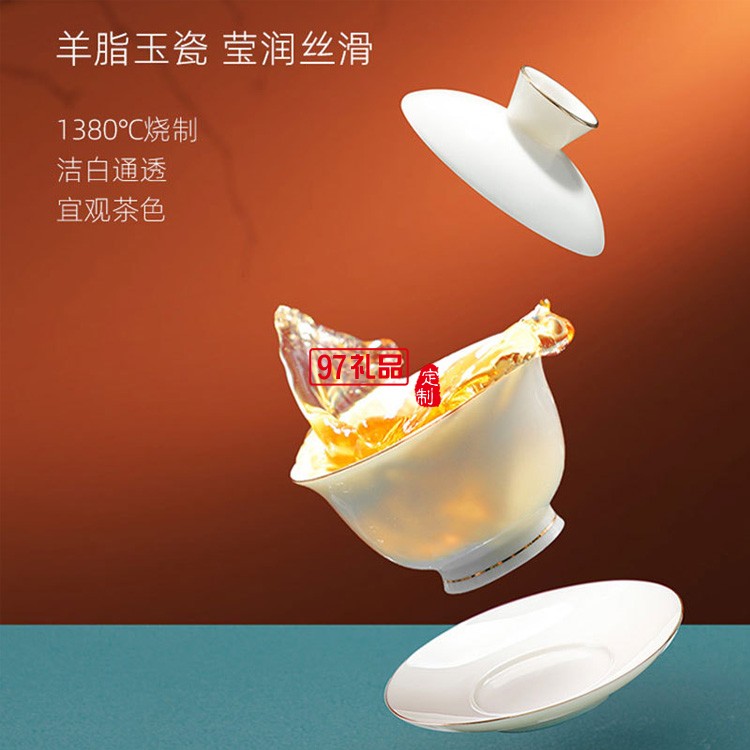 羊脂玉白瓷茶具套裝全套功夫茶杯家用辦公室會(huì)客泡茶陶瓷蓋碗