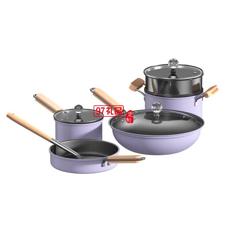 榮事達不粘多功能套裝六件套煎鍋湯鍋蒸鍋炒鍋定制公司廣告禮品