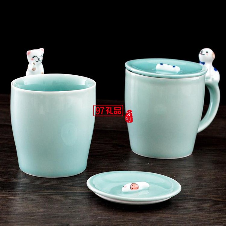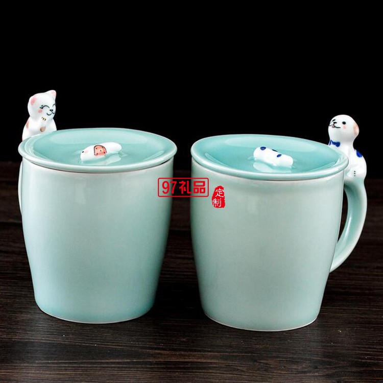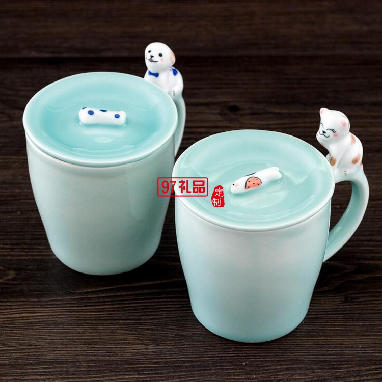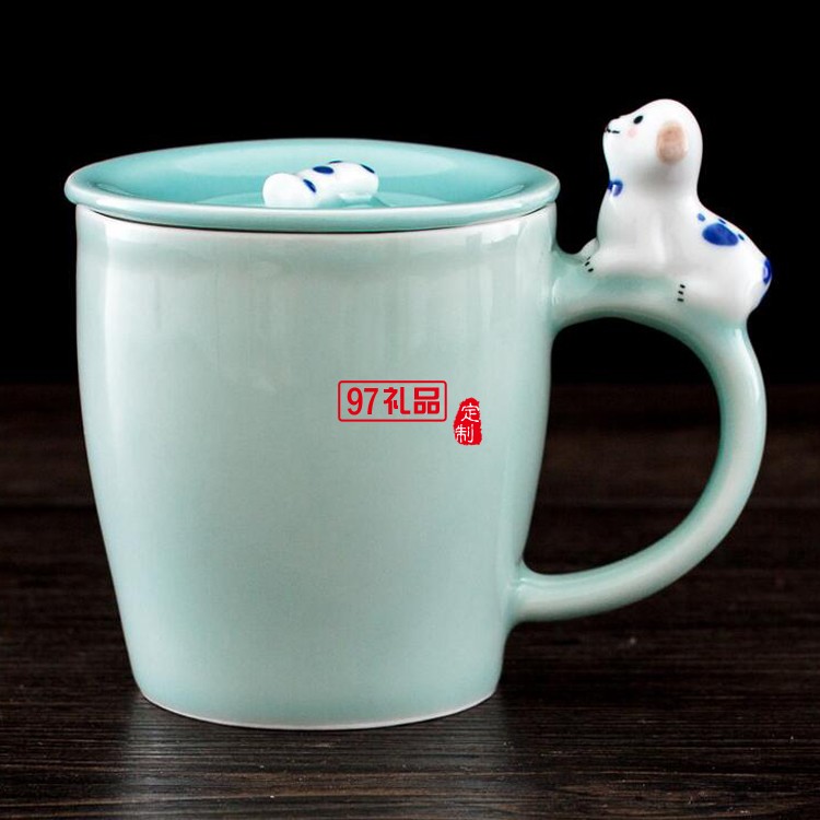 地王大酒店定制案例 把手帶蓋萌物杯 創意 陶瓷杯