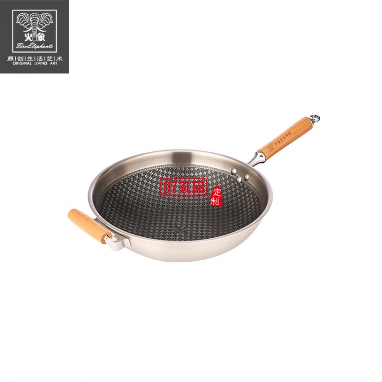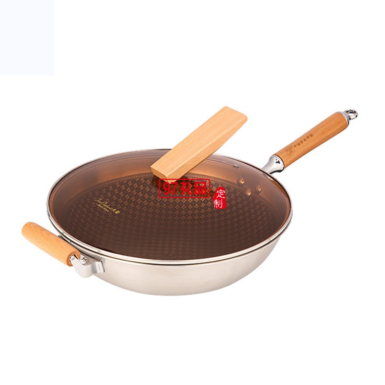 加工定制 304三層不銹鋼炒鍋千福鍋家用廚房炒鍋送客戶禮品員工福利