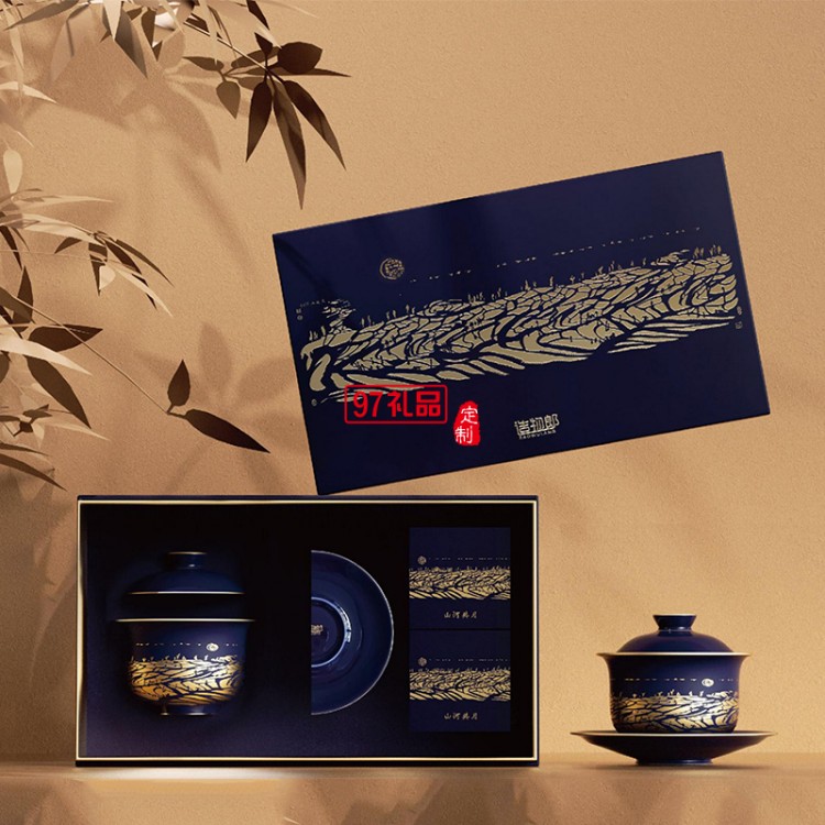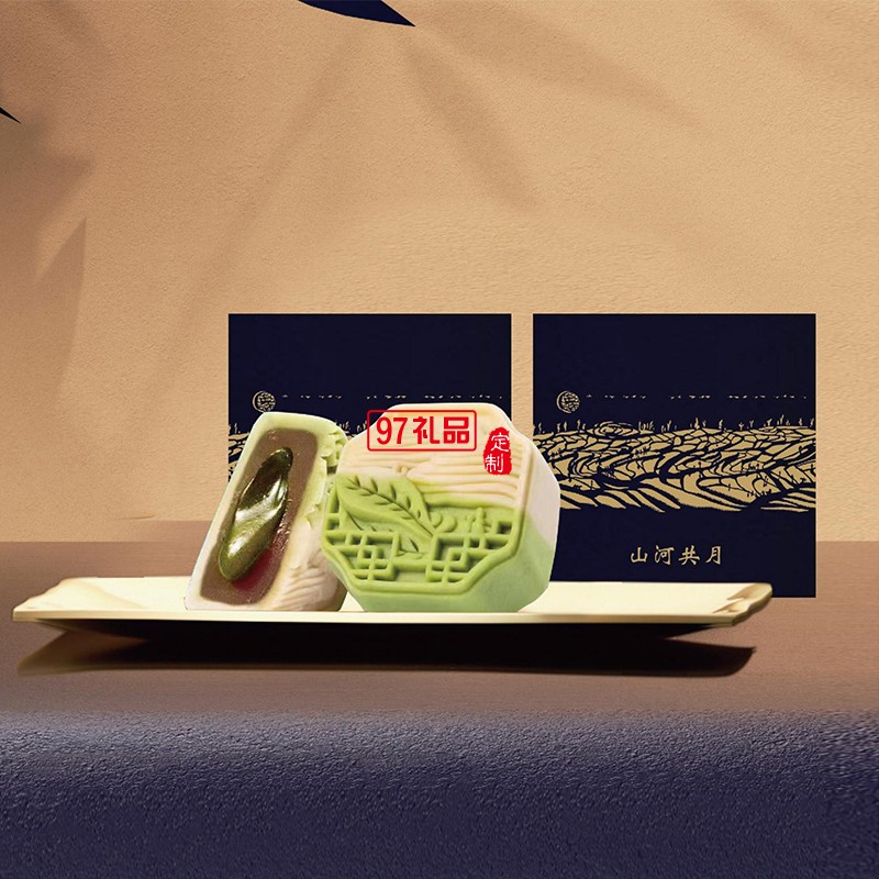 山河共月蓋碗三件套中秋月餅精致禮盒