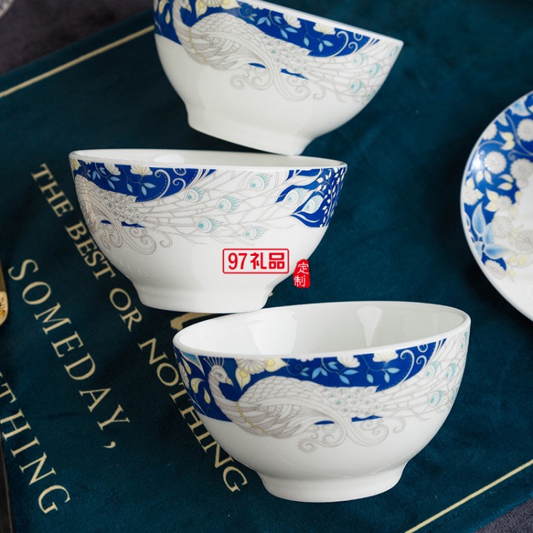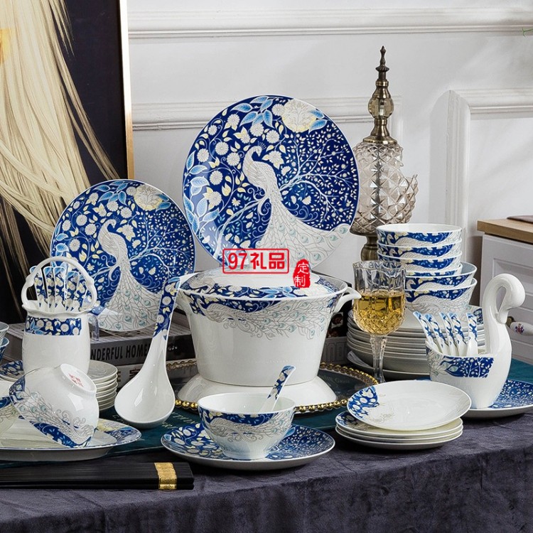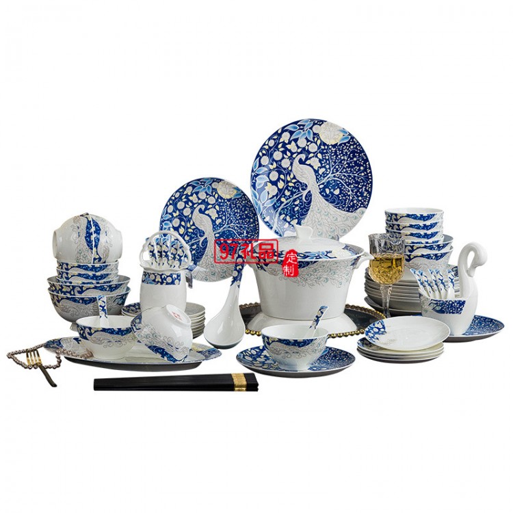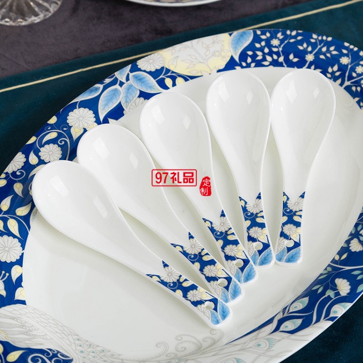 青花瓷餐具套裝 景德鎮陶瓷碗碟盤家用中式骨瓷餐具