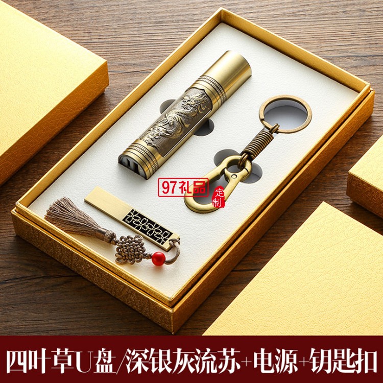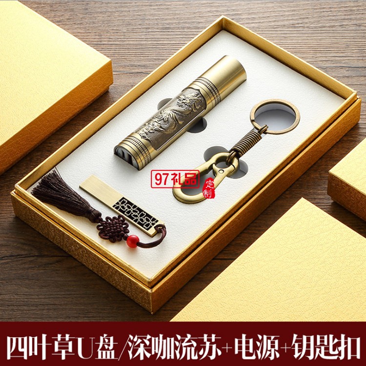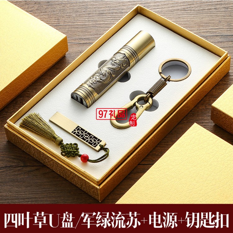 8Gu盤定制logo 青銅如意U盤 手電筒套裝企業周年定制