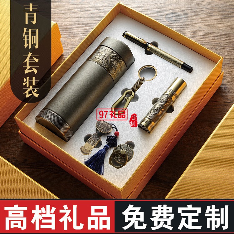 青銅套裝開業保溫杯定制logo 節日紀念禮物獎品高檔商務禮品
