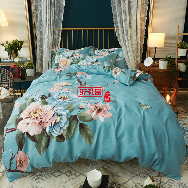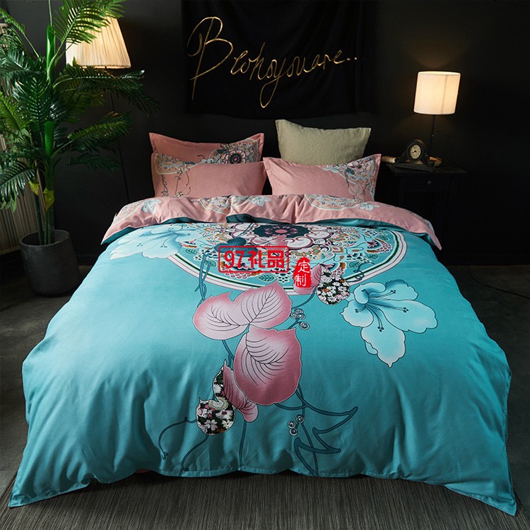 批發全棉生態磨毛四件套大版花四件套中國風套件