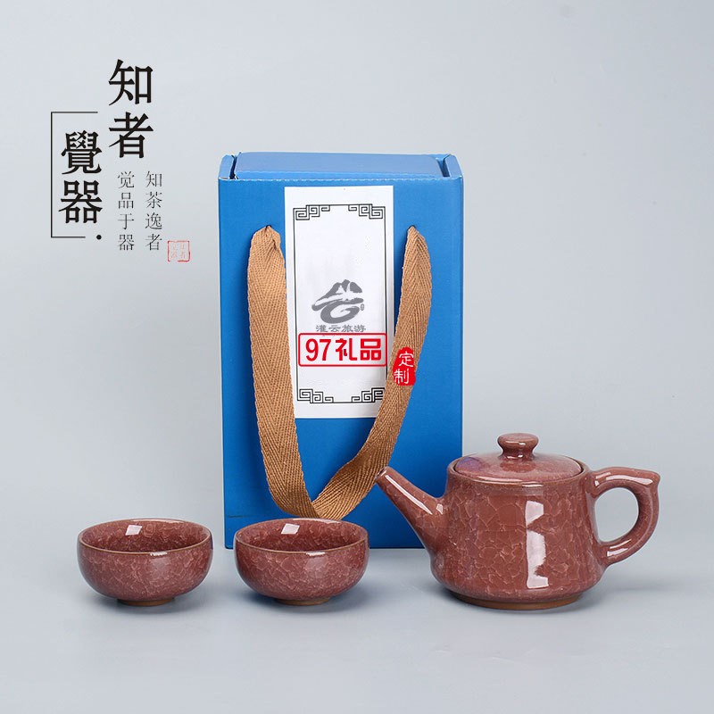 一壺二杯陶瓷冰裂茶具套裝企業開業商務活動禮盒禮品定制